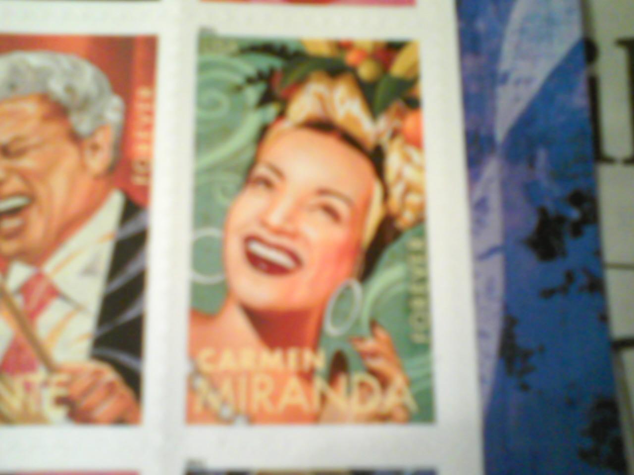Another strange coincidence: Would you believe I just bought a book of these stamps today?: (category U.S. Stamps) “The Latin Music Legends series of course includes this woman in her signature fruity hat.” Here’s the proof:
