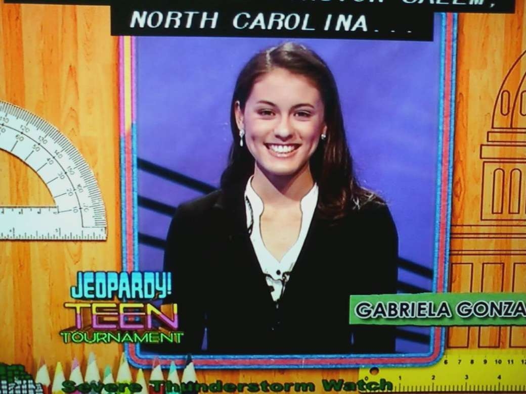 Not to be outdone, Gabriela added 2200 when he answered this Daily Double, in Biblical People: “This shepherd became King Saul’s personal musician & armor bearer.” She then led by 2000, and she picked up the next clue, also worth 2000. (This match is a little more interesting than when I first watched it through!)
