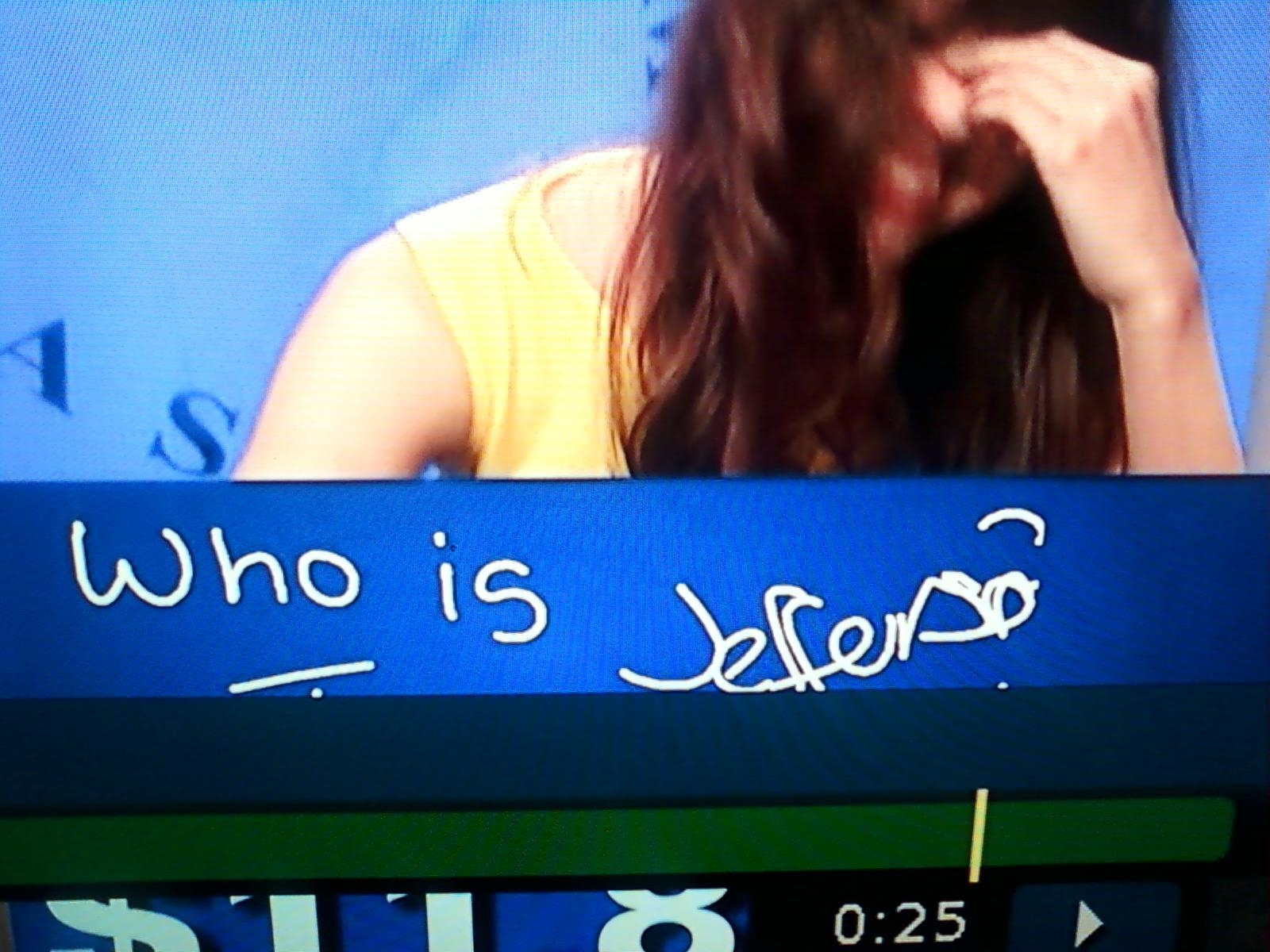 The Final Jeopardy category was American History. This was the clue: “When the future state of Iowa became part of the United States, this man was president.” This was an instaget for me. They counted Rose’s response, even though it looked like this: