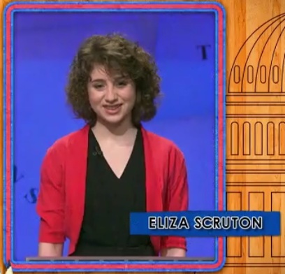 Ben found the game’s final Daily Double at the bottom of B.C.-ING YOU. He had $12,400 to Catherine’s $15,200 and Eliza’s $5,600. He grimaced, and bet only $2,400. The clue: A popular TV & movie subject, this gladiator led a slave revolt that ended with his death in battle in 71 B.C.; his correct response left him $400 short of the lead. If this were the NFL, I’d be certain to read about Ben’s conservative strategies in TMQ on Tuesday morning, likely with Gregg Easterbrook stating that he was writing “game over” in his notebook.