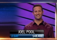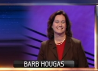 Our contestants got off to a slow start in I DON’T GIVE A…, with some Triple Stumpers, but everybody seemed to recover well in time for the first break after 15 clues: Your scores saw Joel leading at $2,600 with Jody at $2,000 and Barb at $1,600.