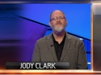 The game was still pretty close when Jody found the game’s first Daily Double under OPENING NIGHT ON BROADWAY $600. Holding $3,600 (his two opponents had $2,600), Jody bet the size of his lead and saw the following: “The Wiz” opened on January 5, 1975; this other Oz-set musical on October 30, 2003. His correct response put him to $4,600 and on a roll that he wouldn’t relinquish over the next seven clues.
