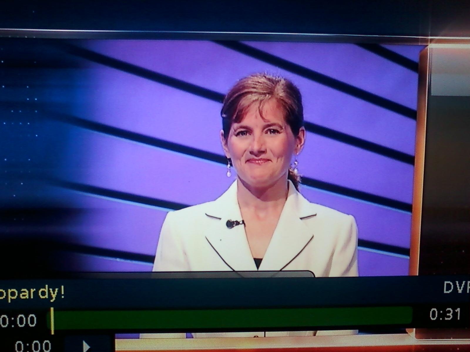 Before today’s recap, a Jeopardy! family member, Vince Gatton, needs our help: He tweeted on Wednesday that he’s raising money for his aunt and her son, who have recently lost their jobs and have hefty medical bills. (Details here.) Come on Jeopardy! fans, let’s unite and help them make their goal, shall we? And by the way, I’d not have gotten this clue on a recent rerun if I hadn’t had to look up “George Bailey” in Vince’s tweet (in Movies on my Tivo DVR): “Angels talking about George Bailey/I can’t stand to watch that Mr. Potter/An angel gets his wings.” Incidentally it was the only clue I got in the category, despite having review this one for the blog. (Heck, I could write a whole post about each of these episodes! I’ve had a lot to say.)