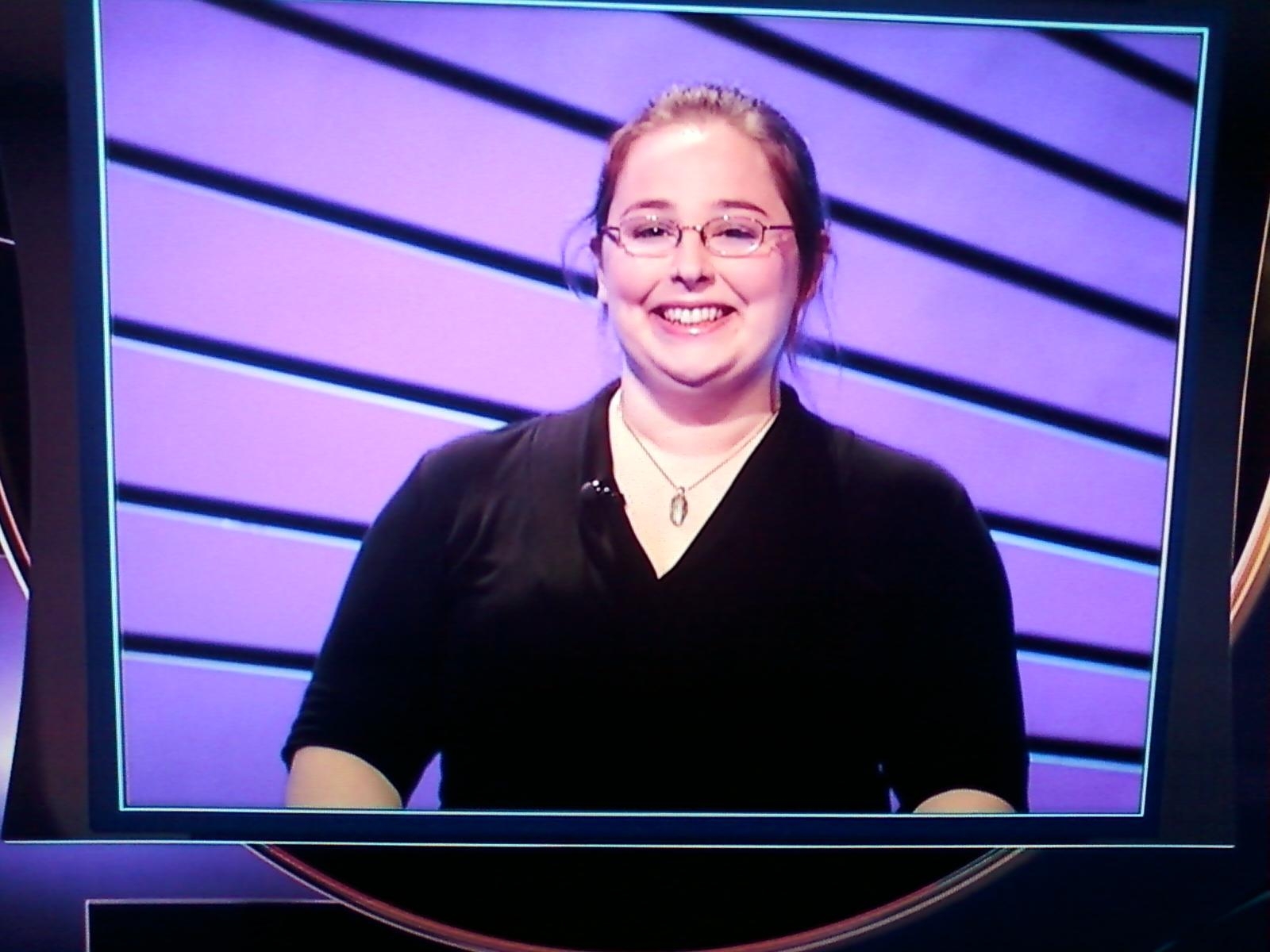 Erin said “Can I get Worn Underneath for ___?” three times. Later she said “Can I get The Nobel Peace Prize Wars for 400, please?” In fact she started many a sentence that way, even when she wagered on Daily Doubles. I like Erin though. She seemed engaged and like she cared.