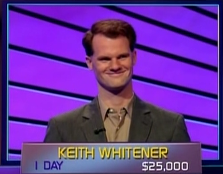 Keith got some good buzzer timing down between the Daily Double and an early break (after just 13 clues); scores: