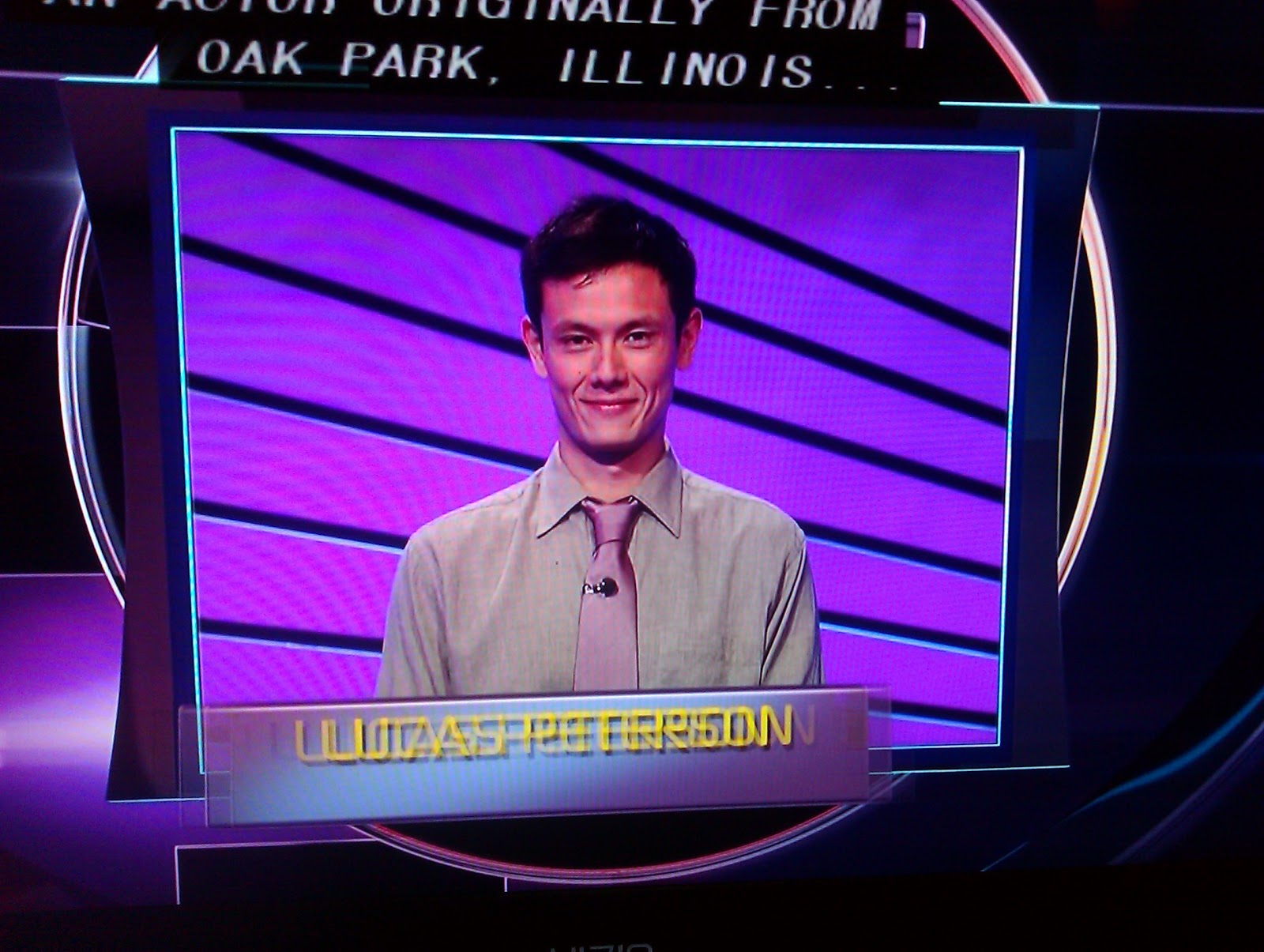 This first clue sort of set the tone for the day. It was a triple-stumper, and two people negged on it. (I did too.) In Oakland “B”s: “In November 1936 it began carrying traffic between San Francisco & Oakland across the water it’s named for.” I said “BART.” So eager was Lucas he didn’t wait for Mr. Trebek to tell him to select the next clue. And Lucas kept going back to the category when the other contestants left it.