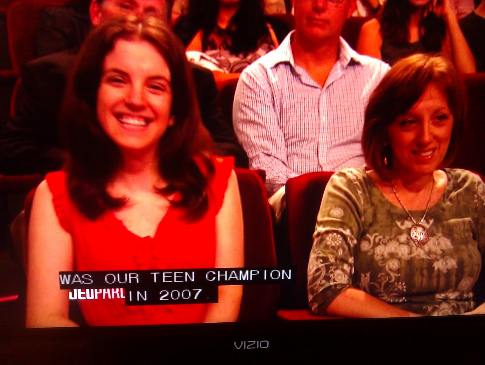 Speaking of Todd, Mr. Trebek pointed out during his interview that Todd’s daughter Meryl was the Teen Tournament champ in 2007. And she was in the audience!