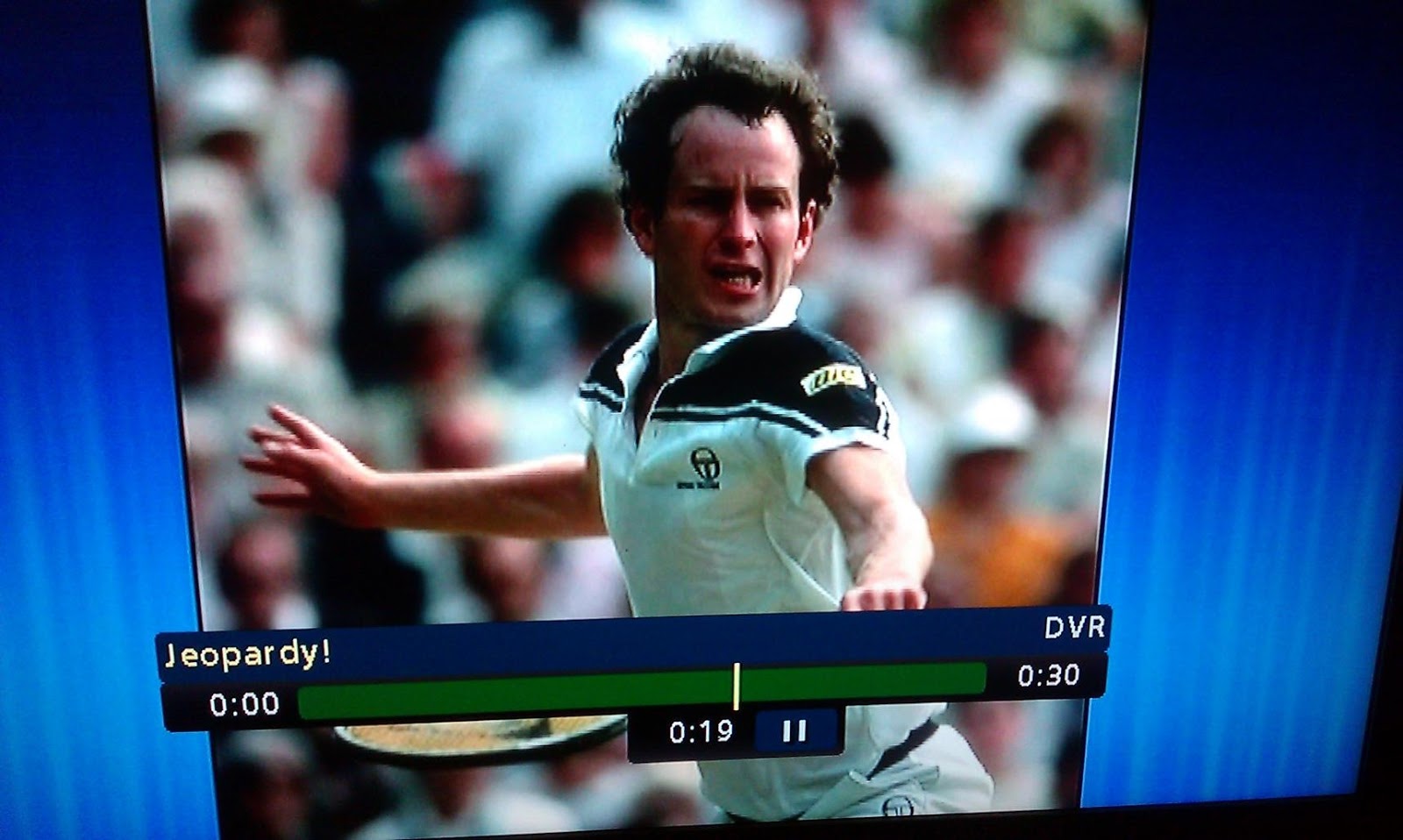 Which U.S. Cabinet Department? would normally be a weak spot for me, but I got this tweeted clue right. Look what happened after I responded! What a pleasant surprise! Another little surprise: I got this triple-stumper in the category: “The Transportation Security Administration.” And Lars and Rob negged on it! Lars found the Daily Double in the same category. He’d gotten 2 right and the one wrong since the break, and had 2600. Lauren still had 3000, and Rob had gotten 4 right and 2 wrong and had 3200. There were 6 clues after this one in the round. Lars wagered 1400 on this clue: “The Food Safety & Inspection Service.” Lars got it wrong. And he got this one wrong too before the round was over, in Retired: “In 2012 this American ended his pro tennis career at the U.S. Open, which he’d won in 2003.” Now it just me? Sure I’m a tennis fan, but Pete? Sampras? Lauren got this one right.