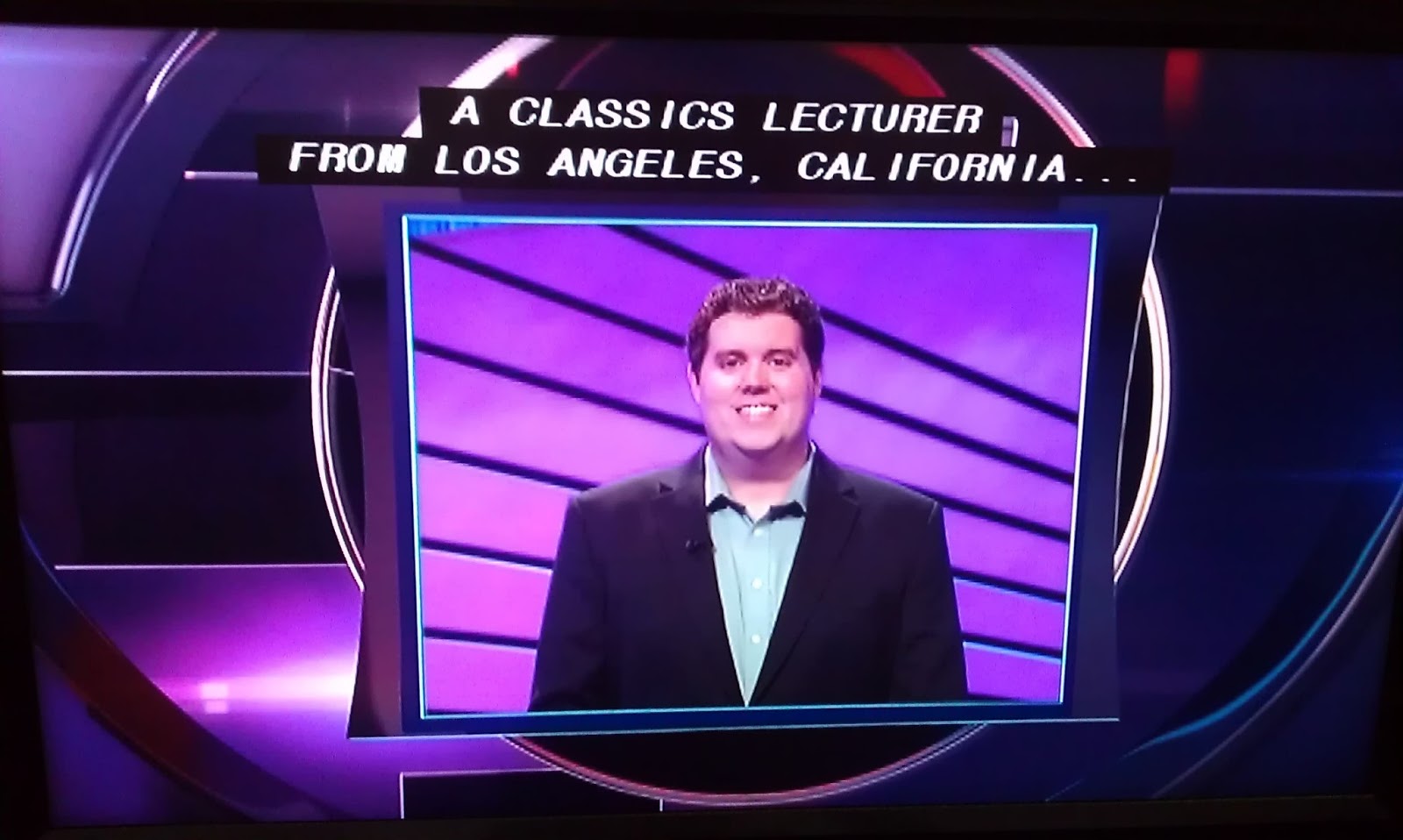 Mr. Trebek said “[M]any of our contestants on Jeopardy! are collectors….” He said it was “deja vu,” since Joshua said yesterday he collected toy cars. (Lars collects vinyl LPs.) Surely Mr. Trebek knows that the Jeopardy! staff ask if contestants collect anything, for interview material!