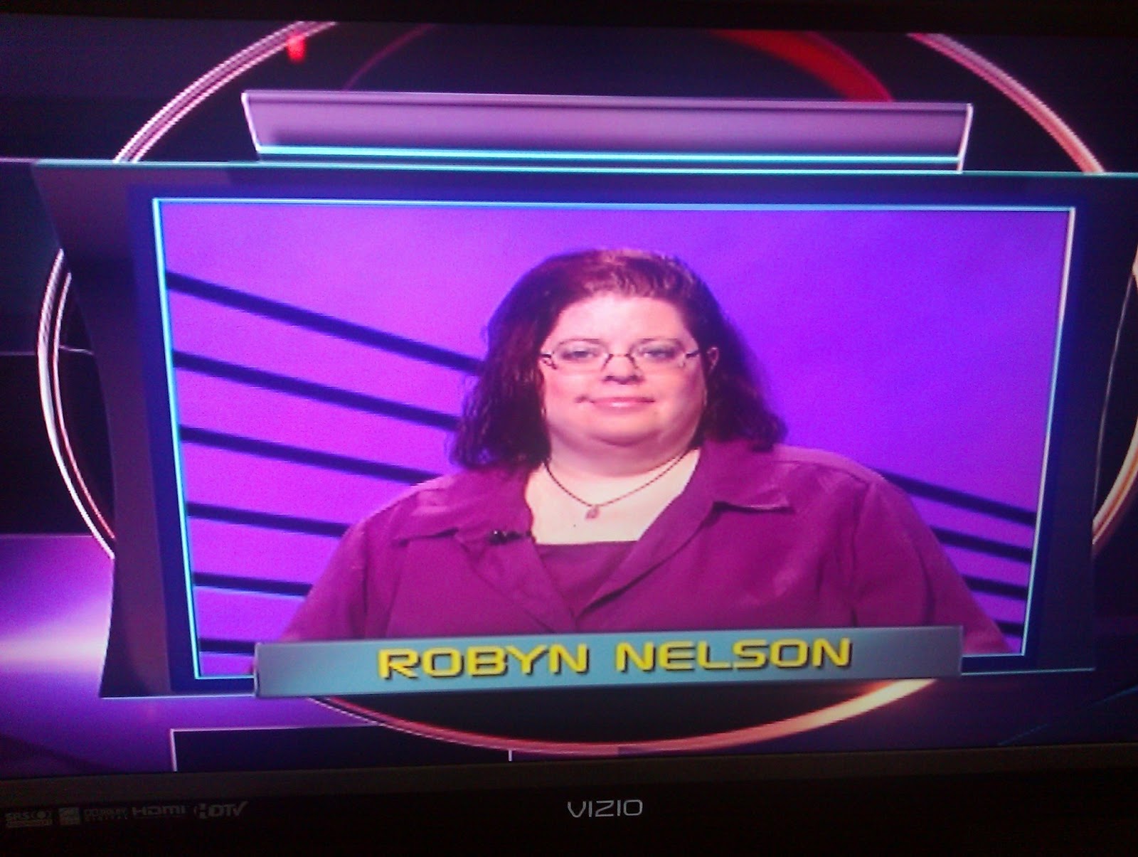 John found the first Daily Double after responding to 2 clues correctly. (A third was a triple-stumper.) He had 800, and his opponents still had 0. John wagered 1000 on this clue in Religious Leaders: “In the 1880s she taught her healing methods to students at her Massachusetts Metaphysical College.” He and I got it right. He got 4 more before the first break and had 3000 going into it. Robyn got one right and Paul got 5 right. They had 800 and 3200, respectively.