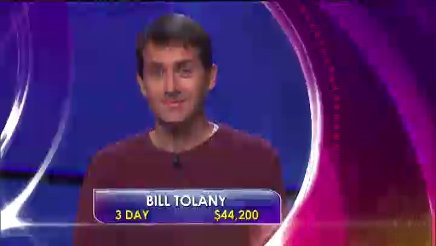 Mike Shapiro and Rebecca Anderson are the challengers today for Bill Tolany, who has won $44,200 over his first 3 games. Today’s his all-important 4th game, which will improve Bill’s ToC chances considerably if he wins!