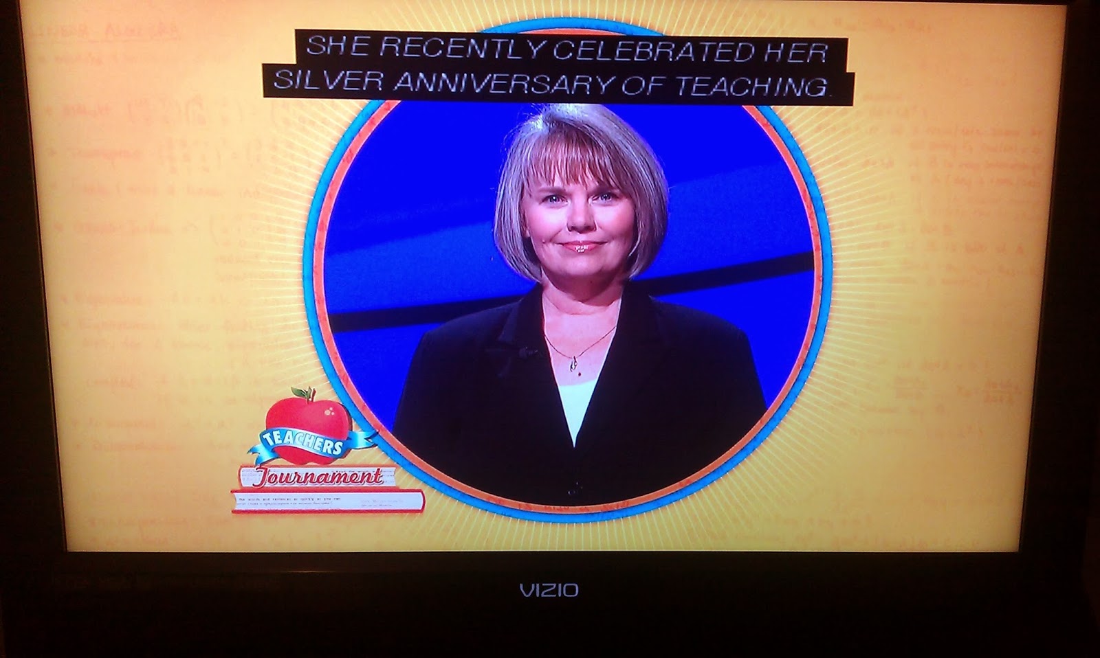 This game felt like it kicked my butt but my score, 18000, was the same as Monday’s, and I had fewer negs. (Today I had 20600 without negs). I did have a rough day today long before the show ever started, though. I didn’t get any of the clues in The Right Tool, and I didn’t get anything right until this 8th one in Yes, November!: “On Nov. 23, 2013, National this day, organizers hope to bring more than 4,000 kids out of foster care.” Despite the title of this post, I went 3/5 in Talkin’ Math. I never thought math was a weakness of mine, and I’m surprised to see it’s my worst category in Learned League. In fact it looks like I haven’t gotten one right yet. I negged on this one today, even though the correct response came to mind: “Students usually take this, the study of angles & their functions, after geometry & algebra.” I don’t know about you but at my high school, pre-calculus came after geometry. (Algebra’s first.)