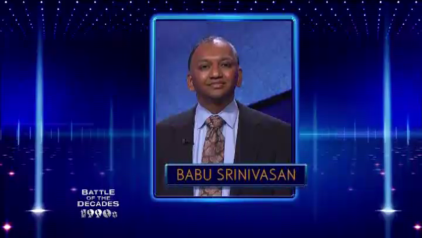 Much like the Ultimate Tournament of Champions, Babu had issues with coming close to answers, but being not quite there. He said “I’m So Sexy” instead of “I’m Too Sexy” when dealing with the Right Said Fred song in 1990s NO. 1 HITS! It enabled Eddie to run the category and earn applause!