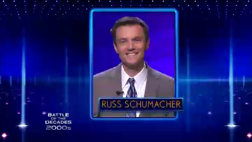 He made a couple of minor errors but Russ managed to do just enough to move on in the Battle of the Decades! I don’t think that Larissa’s SELF-E neg/refund had an effect on the outcome. I believe that the bet on Russ’ Daily Double would have been different enough so as to nullify the extra $800 that Larissa might have had early on.