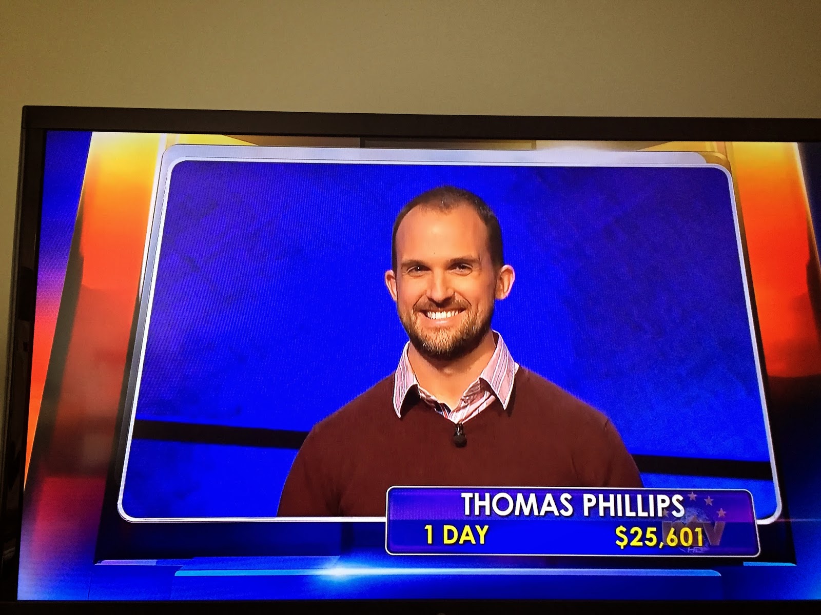 Thomas bet $1,800. His clue: 3M. His correct response put him at $3,600! His running the category put him at $4,200