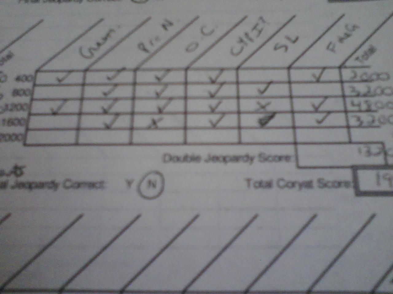 I made up for the Jeopardy round in Double Jeopardy, which was nearly three times that of yesterday’s: