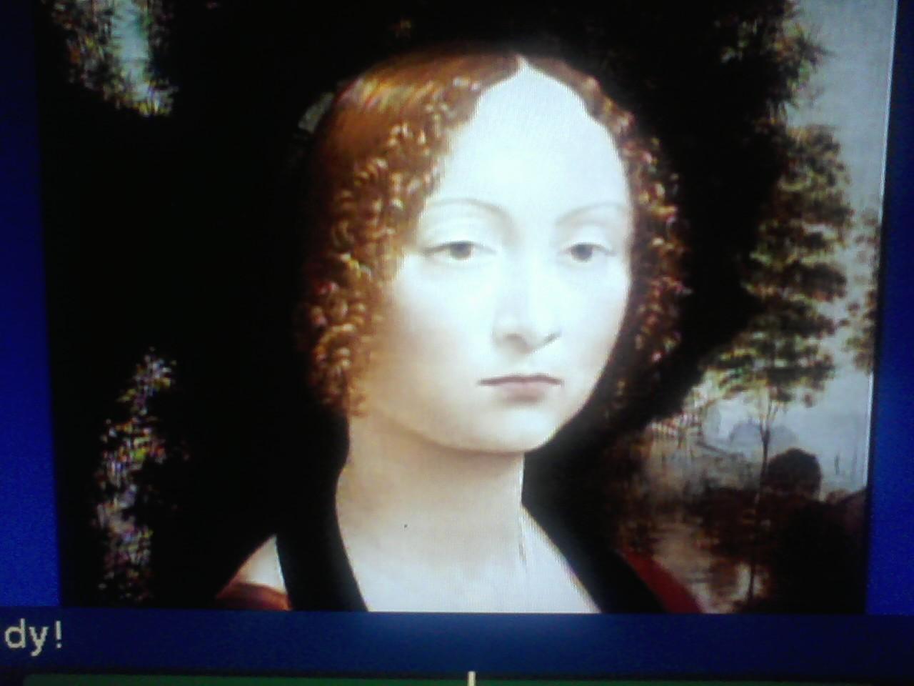 Aidan found the second Daily Double of the round in Art and Artists, and this time wagered 1800 of his 8800. Zach followed closely with 8600. Aidan had just professed to loving art in today’s contestant interview! Here is the clue and the accompanying image: “There’s no wry smile on this Italian’s ‘Ginevra de’Benci,’ which you can see right here in the U.S. of A.”*