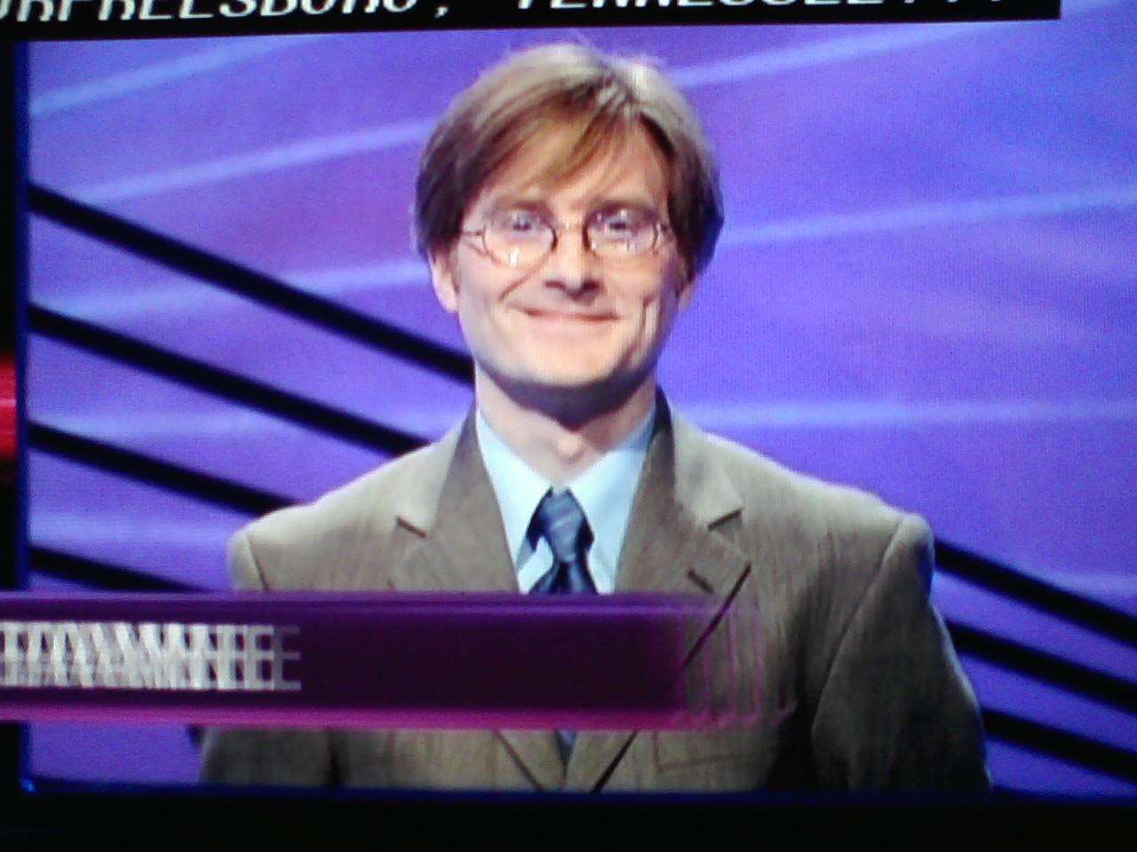 Was it just me, or did this group of contestants seem rather bland? Eureka told a story of a project she did for a psychology paper in college. It was nearly identical to a science fair project I did in 7th or 8th grade: trying to get fish to respond a cue of tapping on the glass of the aquarium. It would never occur to me to mention it on Jeopardy! as something interesting about me.
