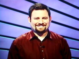 Did you join Doug and I in responding “amber” to this clue in Colors?: “This secondary color is in the third line of ‘America the Beautiful.'” Mr. Trebek paused there, and I’m not sure why! Karen picked it up, and the next clue was the Daily Double in the same category. She had 3200, Jason had 2800, and Doug had 800. Karen wagered 1800 on this clue: “The name of this deep red also means ‘of prime importance.'” We seemed to have an eternity to come up with the correct response, but I didn’t, and neither did Karen. Since when is the correct response a “deep” red? I’d say it’s more like the color of Karen’s shirt. “Deep” is more like the color of Jason’s shirt. (Thanks for demonstrating, you too!) I got curious and looked up the color in my dictionary. I swear this is what it says: “a variable color averaging a vivid red that is yellower and duller than madder crimson or carmine, bluer and duller than scarlet or Castilian red, and duller than apple red.”