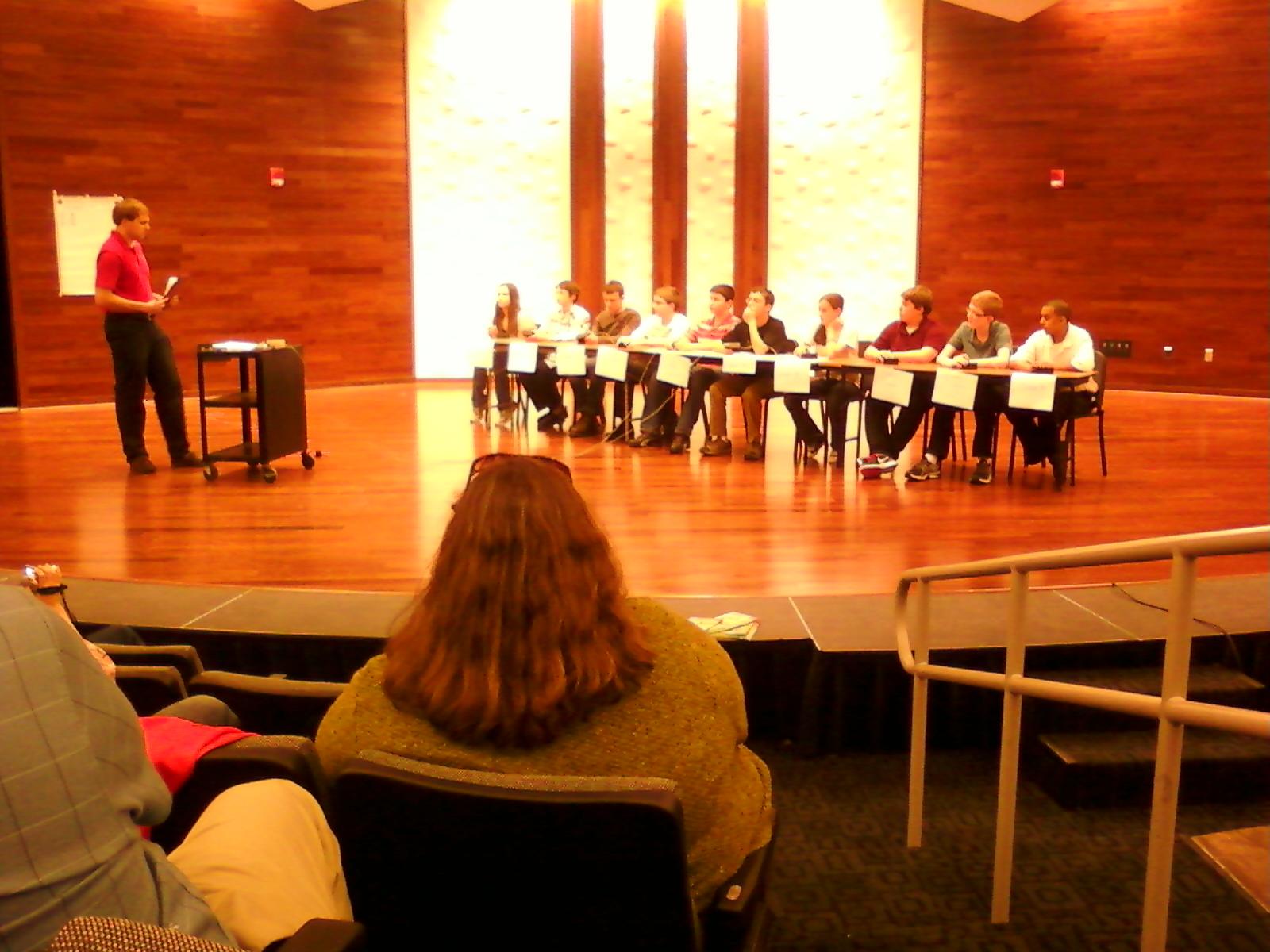 David had the kids say their names and who in history they’d like to have dinner with. I should’ve known then that Chandler (the eventual champion) would be good – He pulled out some weird name I could not tell you! The first name was “Carl,” and the last name was a long one that began with “L” and may have ended with “-stein.” (Pardon my ignorance!)