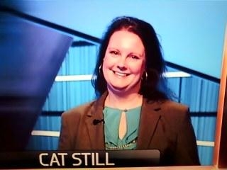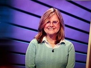 Despite Peter’s lengthy interview and some sllloowww clue-selecting, both rounds had no clues hidden. Judy ended Double Jeopardy with 13200, while Peter had 5800 and Cat had 8200. The Final Jeopardy category was Word Origins. This was the softball clue: “An exploited part of a law, originally it meant an opening in a castle wall used to look at or shoot at an enemy.” All four of us got it right. Peter added 4201. Cat added 3401, which guaranteed her second place even if Peter had doubled. Judy added 8000, more than enough of course even if Cat had doubled. So we’ll see Judy Monday. Mr. Trebek pointed out she is the first two-time champ of the week.