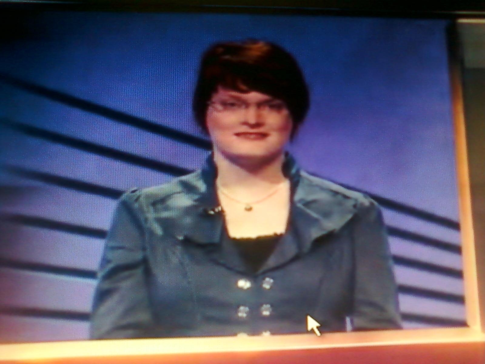 A: Honestly, I completely froze when it came time to make Final Jeopardy bets. I’d practiced and practiced at home, but there in the studio I completely lost the ability to do simple addition! I took up three sheets of scratch paper, never got the same answer twice, they called time on me, and I just put a number down. I was honestly relieved that I didn’t know the answer because I don’t think I would ever have forgiven myself for losing on the math!