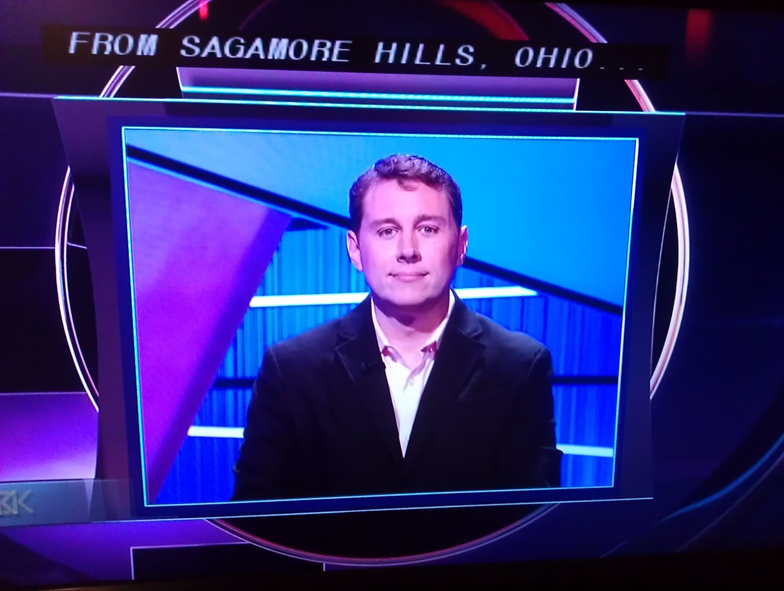 Mr. Trebek gave the less-than-a-minute warning with the whole All About Acting category remaining. Luckily we saw all those clues. Jason had gotten 8 right since Cara’s Daily Double, and had 9800. Cara had gotten 3 right and had 6200. Scott had gotten one right and had 0.