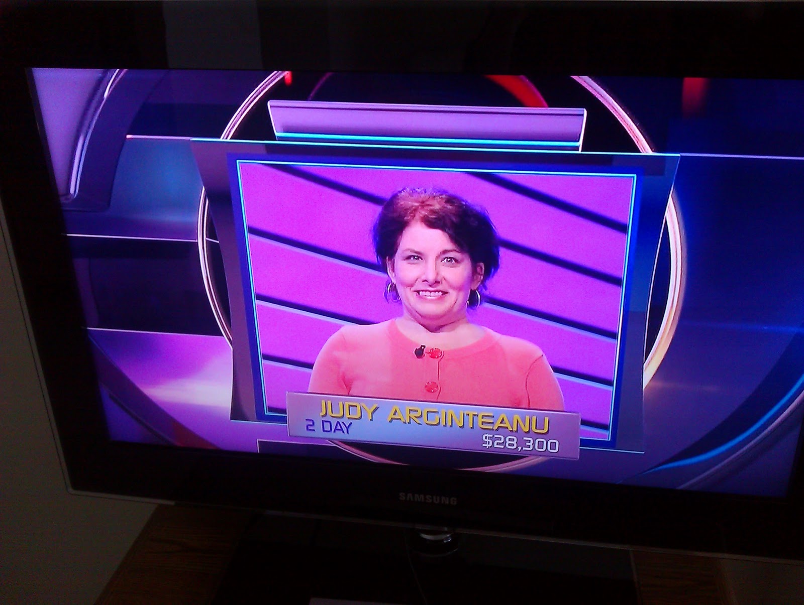 On Friday last week, Judy Arginteanu became a 2-time champion. I just noticed that she, like many recent contestants it seems, is from Minneapolis! Am I really gonna have to update the ToC list today? Her opponents: