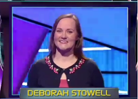Meanwhile, Mark had buzzer success as the Daily Doubles played hide-and-seek quite well from the contestants, in spite of Deborah’s complete indifference to finding them! Needless to say, Mark found the first of them, under FROM A TO E $1600. 5 clues remained on the board (TREES 12, 16, 20, A TO E 20, TRAFFIC 4), including a Daily Double! Scores were: