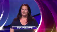 Rhea did very well on “RET-” to bring herself back into the game! Her buzzer mojo in BUTLER brought her into the lead! No Daily Double hunting was taking place, though!