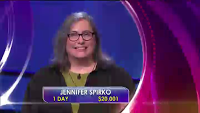 Your challengers for Jennifer Spirko today: Jermaine Jones and Rhea Hantelman. Alex claims “They gave me a choice — Come out as the great pumpkin or as Nathan Detroit.”
