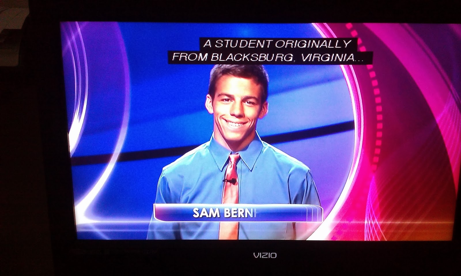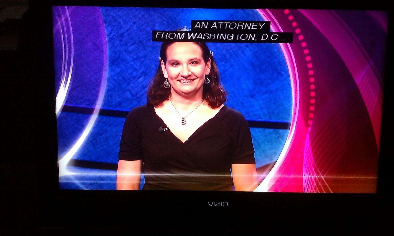 The Final Jeopardy category was the strange Sports Term History. Here’s the clue: “After throwing a long, last-second touchdown in 1975, Roger Staubach said, ‘I closed my eyes and said’ this.” This was the ultimate instaget for me. Mr. Trebek said all the contestants wrote their correct responses down quickly too. Indeed they were all correct. Sam doubled his score. (He said in his interview he plays soccer!) Donna added 11000. Meredith added 1201, making her a 2-day champ.