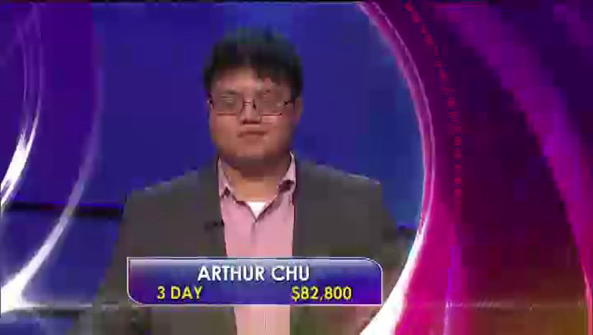 Puzzlingly, Arthur went to the $400 clues with a Daily Double still out. Did he forget that there were two of them? Thus, it was Tarn who played the final one, under EPONYMOUS AIRPORTS $1200. Scores: