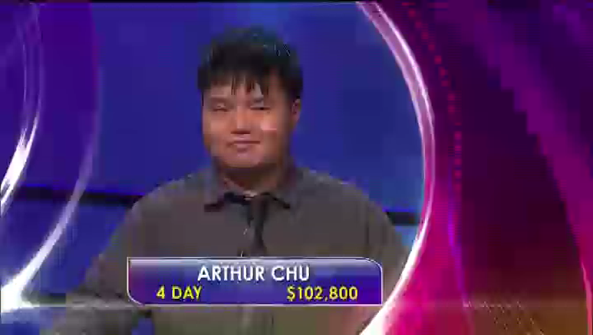 The Arthur train kept motoring along during this round. I’m surprised that WRITERS HATIN’ ON WRITERS $1600 didn’t have the Daily Double! It was under ASIAN CAPITALS $800 instead! And yes, Arthur got to play it. Scores: