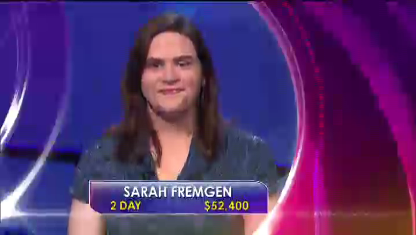 Back to the game, the Daily Double came very late on, but it was Stacy’s to play, under YOUNG MR. LINCOLN $800! Scores:
