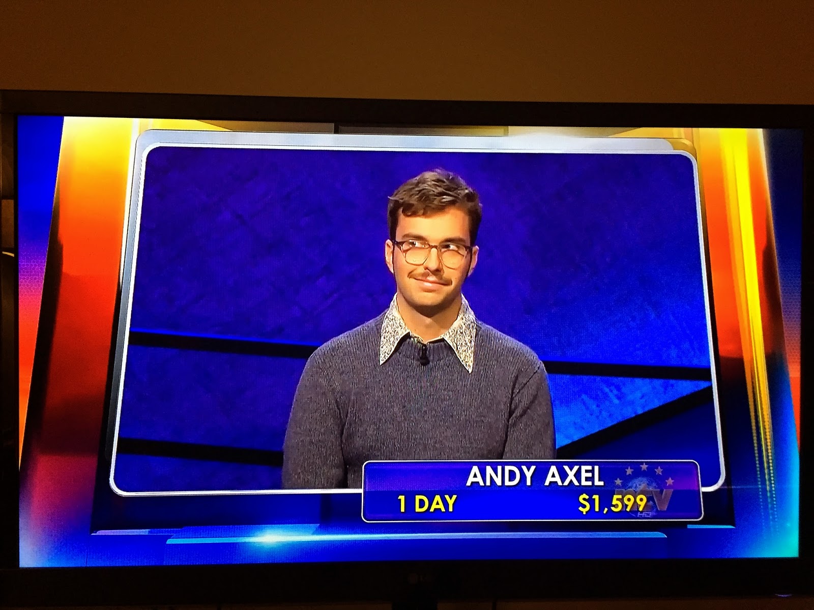 ANGELS $800 had the final Daily Double and Eamon got to play it (Lots of low-valued Daily Doubles today!) Score: