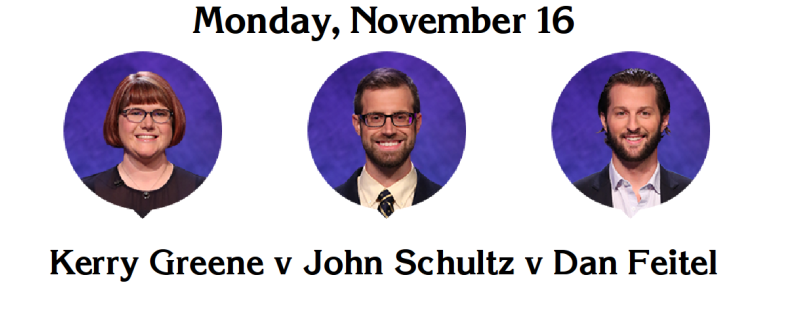 John got off to a really cold start and was in the negative midway through Double Jeopardy! Dan then dropped $4,000 on a Daily Double, and came back to Kerry! Then, Kerry gave the wrong number on Pope Benedict and she dropped $3,000! That certainly kept the scores down going into Final!